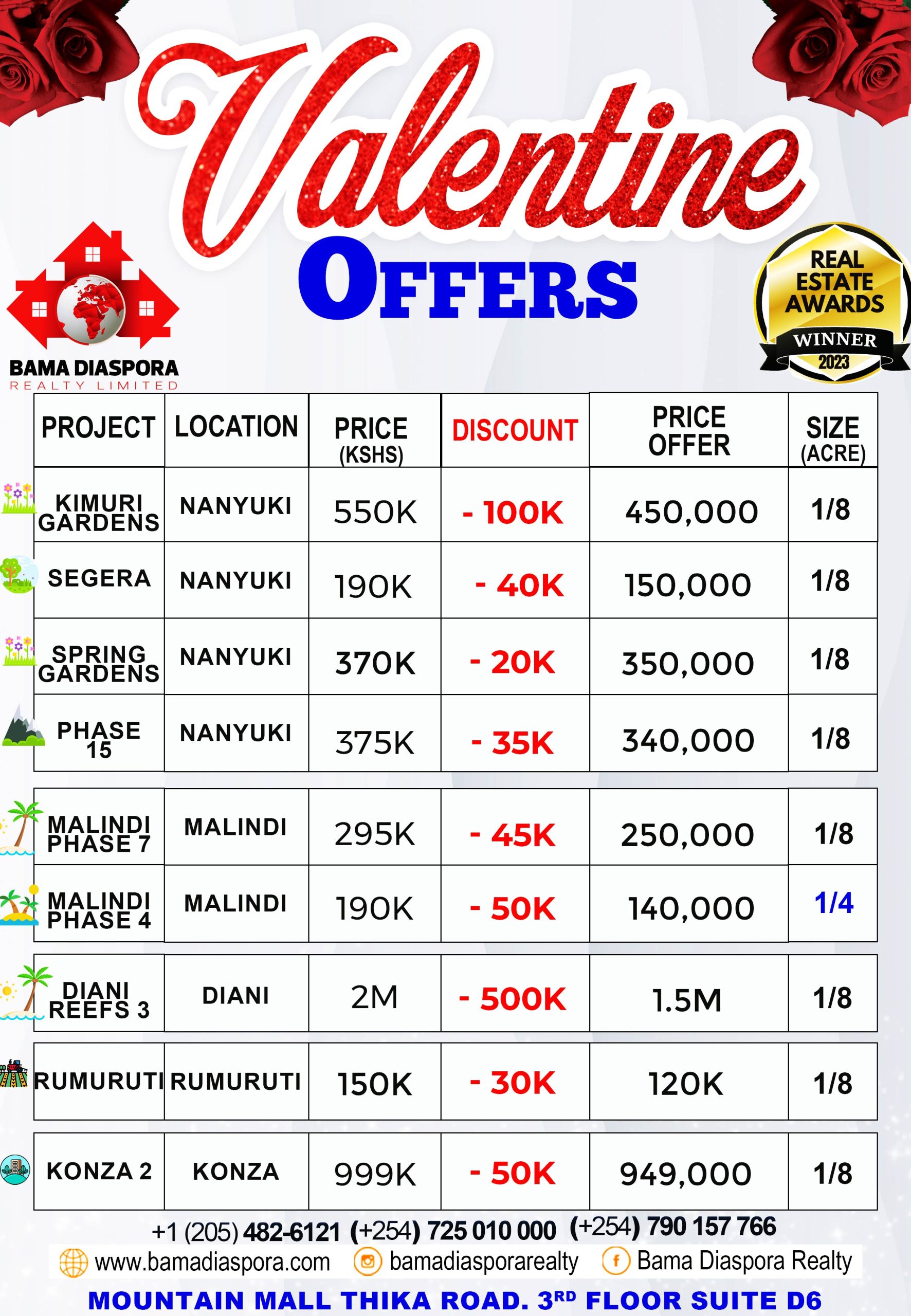 These Valentineās offers are limited-time only and available while plots last. Whether youāre in Kenya or in the diaspora, our team is ready to guide you every step of the way.